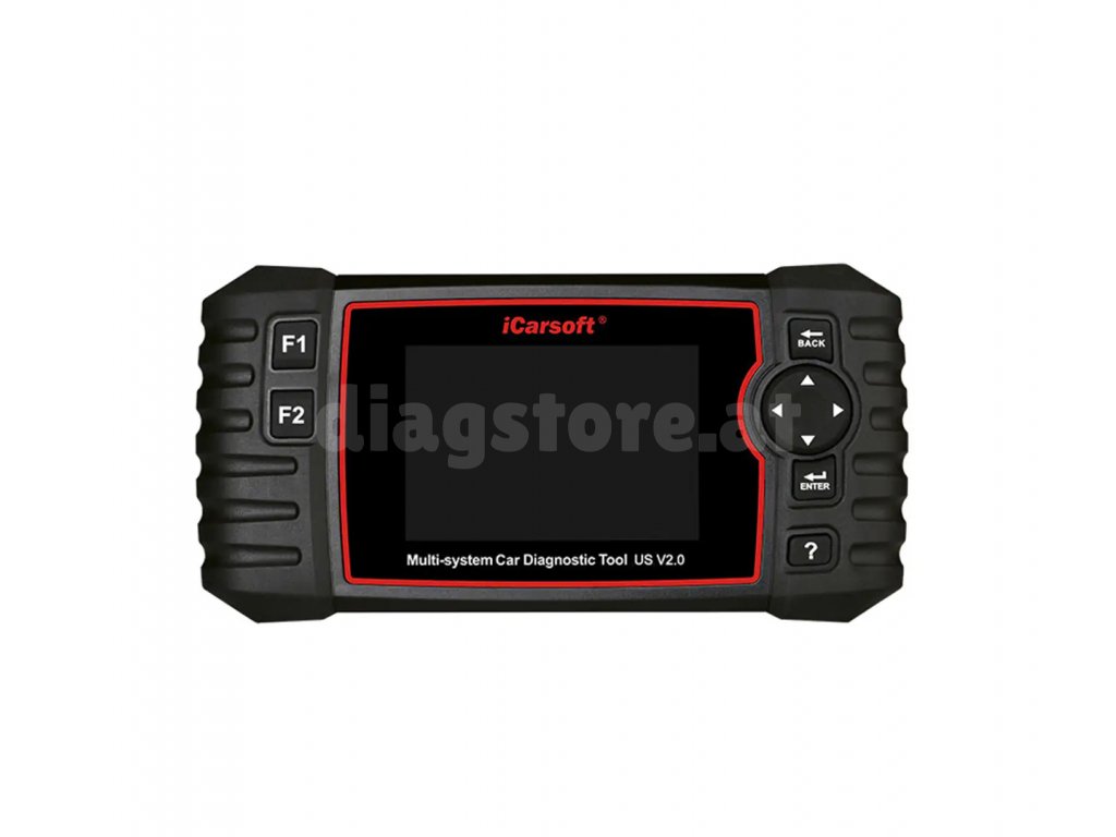 iCarsoft US V2.0 ist ein Diagnosegerät, das für Fahrzeuge von Chrysler/Ford/General Motors/Holden/Jeep bestimmt ist. Es unterstützt die Diagnose aller Geräte, wobei es das Lesen und Löschen von Fehlern, die Anzeige von Live-Daten und einige Servicefunktionen ermöglicht. Grundlegende Motordiagnose auch für alle anderen Marken im Rahmen des OBD-II-Standards verfügbar.