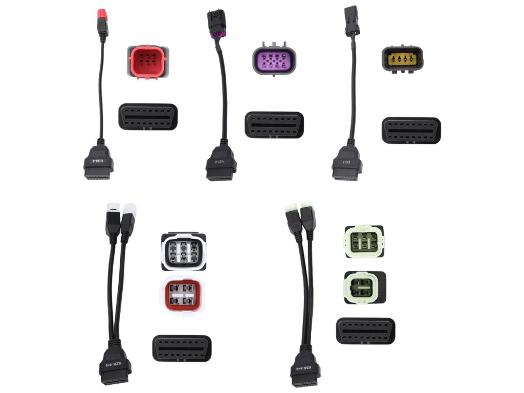 Set mit OBD-II-Adaptern und Softwarelizenz für die Diagnose von Motorrädern mit Launch-Geräten. Die Launch-Diagnosegeräte eignen sich für Motorräder der Marken Harley Davidson, Yamaha, Honda, Suzuki, BMW, Kawasaki, Indian, Polaris, Victory, Ducati und andere. Das Produkt ist nicht separat verwendbar, die Adapter und die Lizenz müssen mit einem geeigneten Diagnosegerät kombiniert werden.